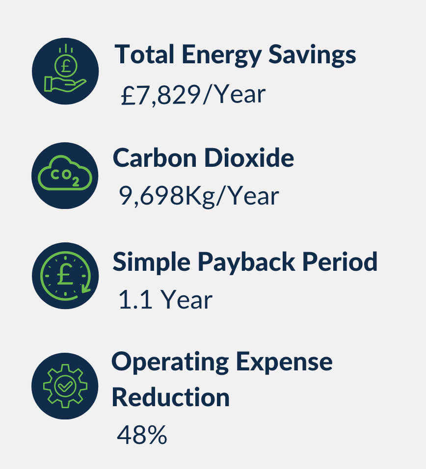 Utility Cost Savings: The installation of Intelli-Hood® led to impressive annual utility cost savings of £7,829. This significant reduction can be attributed to the system's ability to adjust exhaust ventilation dynamically, minimising energy consumption during periods of low cooking activity.